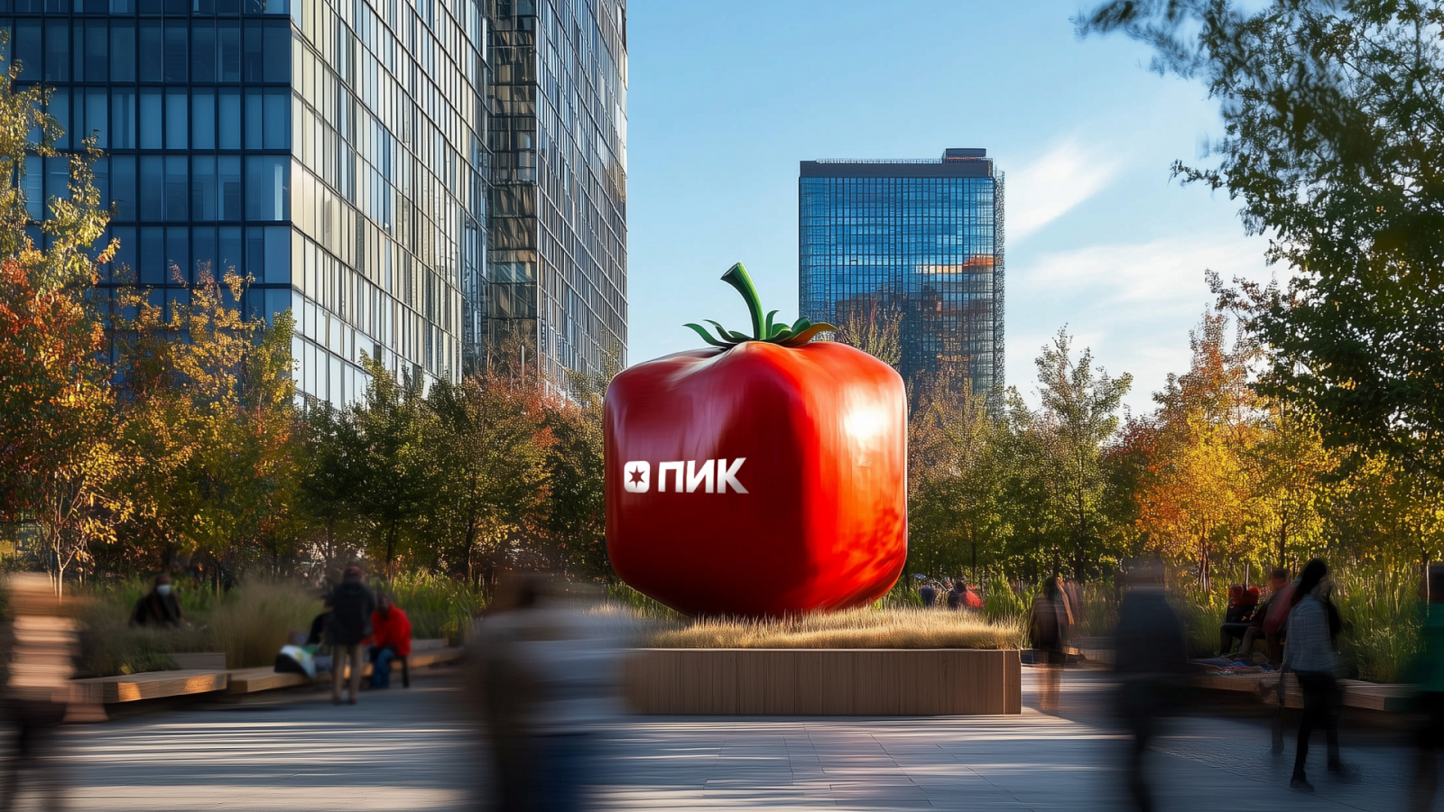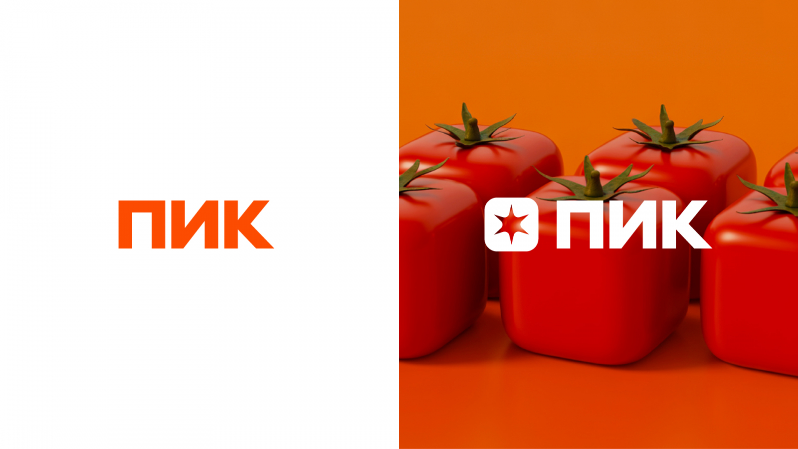 Логотип ПИК — это квадратный томат, символизирующий структурность и надежность. Форма логотипа четкая и геометричная, отражает архитектурный подход компании.