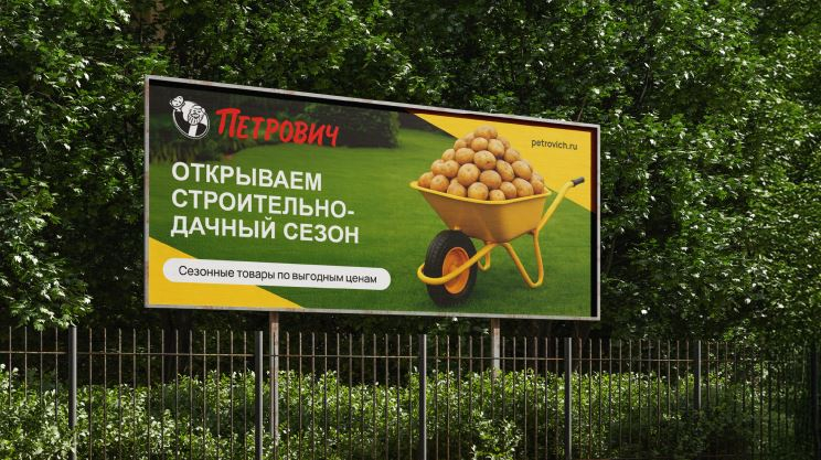 В визуальном языке Петровича центральную роль играет персонаж-маскот — дед. В овощной версии ему просто вручили картошку.