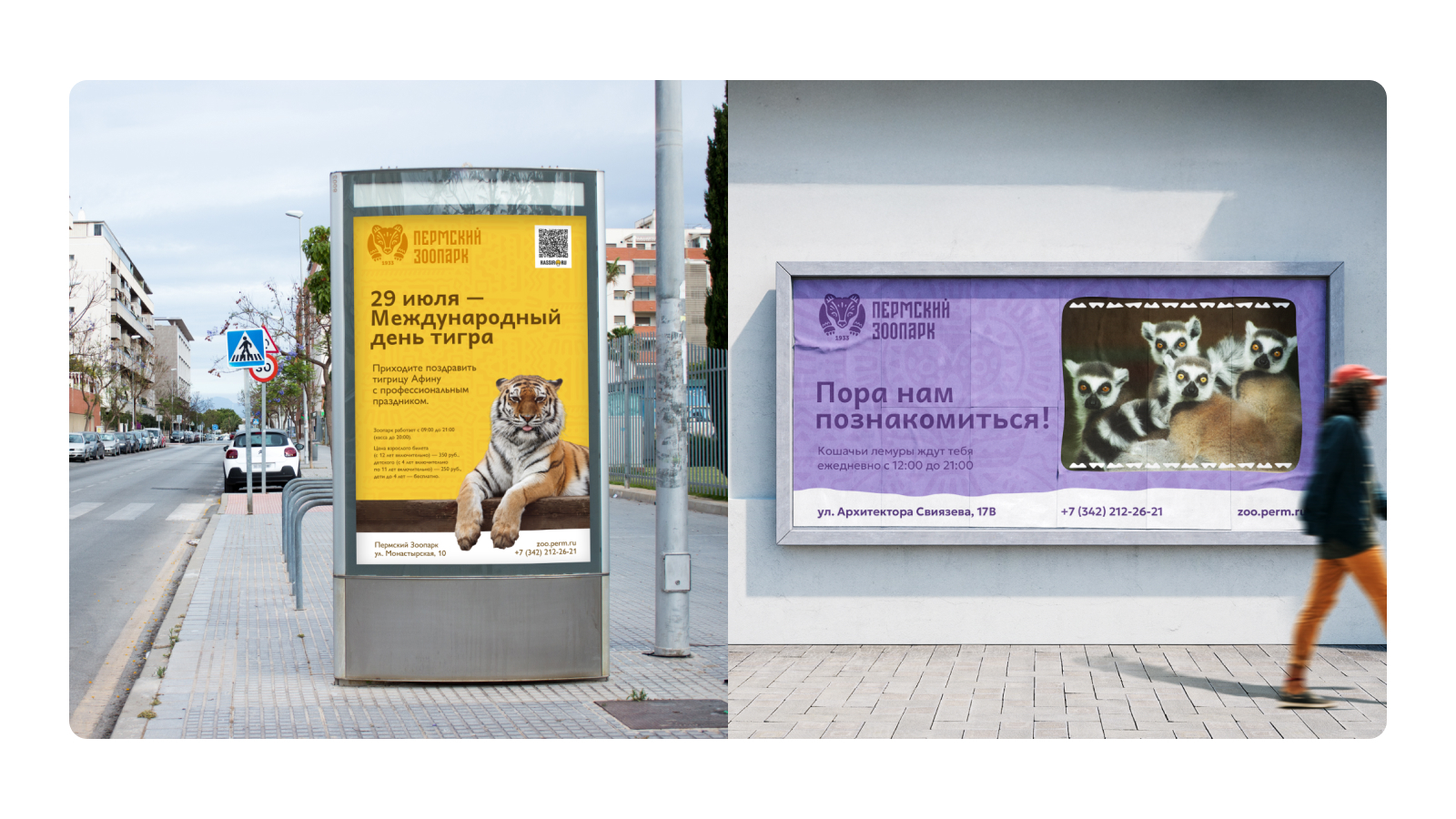 Рекламные баннеры стали настоящими визуальными акцентами города: сочные цвета, изображения животных и дружелюбное послание мгновенно привлекают внимание. Они создают позитивный образ зоопарка как места где можно комфортного пообщаться с животными, получить новые впечатления и отдохнуть с семьей или друзьями.