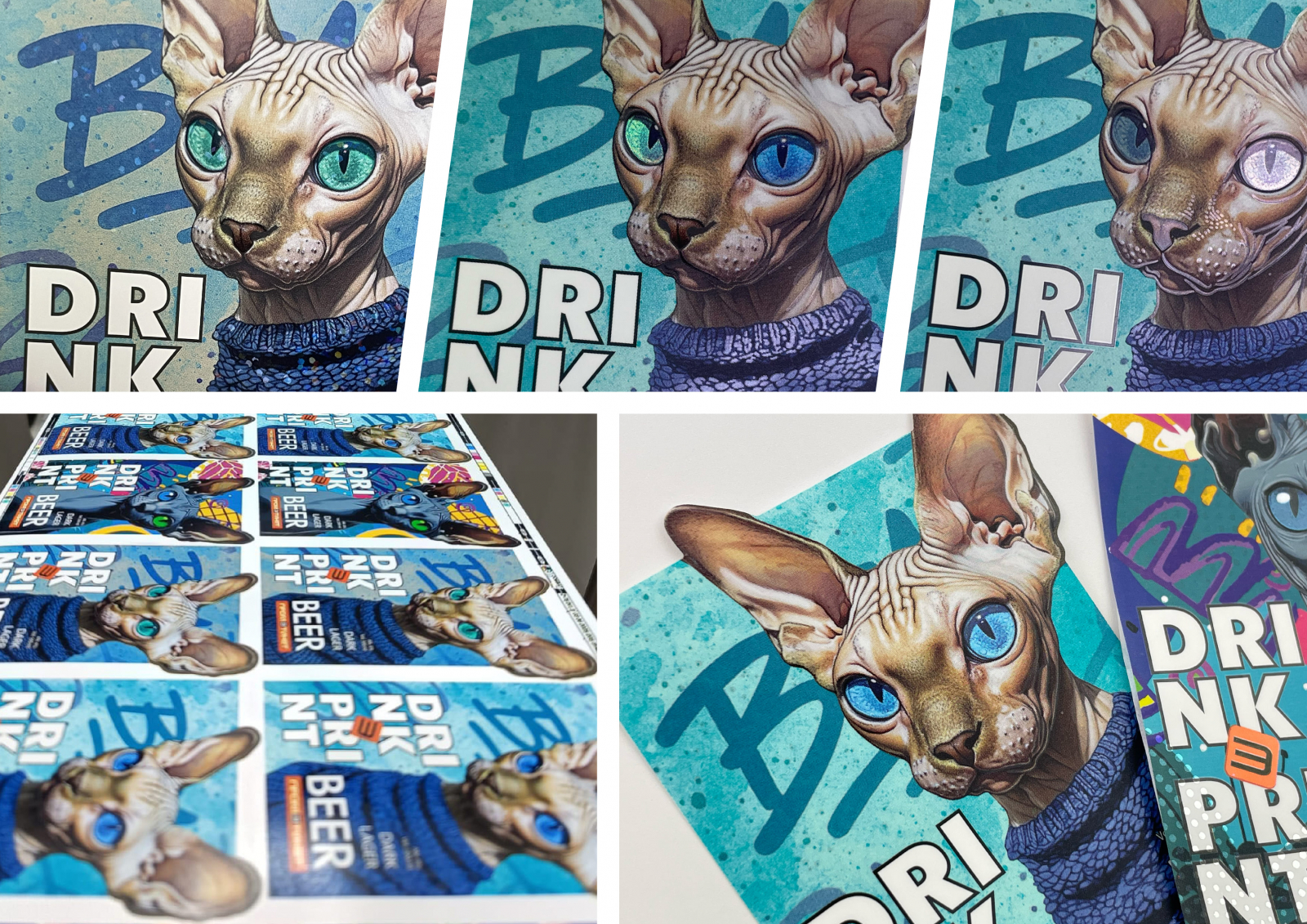 Для презентации своим клиентам всех возможностей, печать сразу было решено проводить на 3-х основных типах материалов – металлизированная бумага, полуглянец, прозрачная плёнка. Что с успехом и за неполную рабочую смену осуществили специалисты ПК «Альянс». В результате получили живой образец с точным описанием технологий. Это помогает уверенно презентовать возможности своим заказчикам и обсуждать не абстрактные, а конкретные решения.