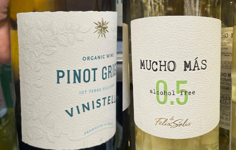 Ещё один нюанс — цвет бутылки и жидкости. Даже плотные фактурные материалы имеют разную степень прозрачности, и белоснежный фон может стать грязным на тёмной бутылке. Производители элитного алкоголя зачастую выбирают материал окрашенный в массе, чтобы избежать контрастного белого среза бумаги на чёрном стекле. Иначе эта незначительная деталь может снизить впечатление от премиального продукта. Современные технологии позволяют делать даже небольшие партии вин визуально сложными и тактильно интересными. Отделка фольгой и рельефное лакирование стало доступным как крупным брендам, так и домашним производителям.