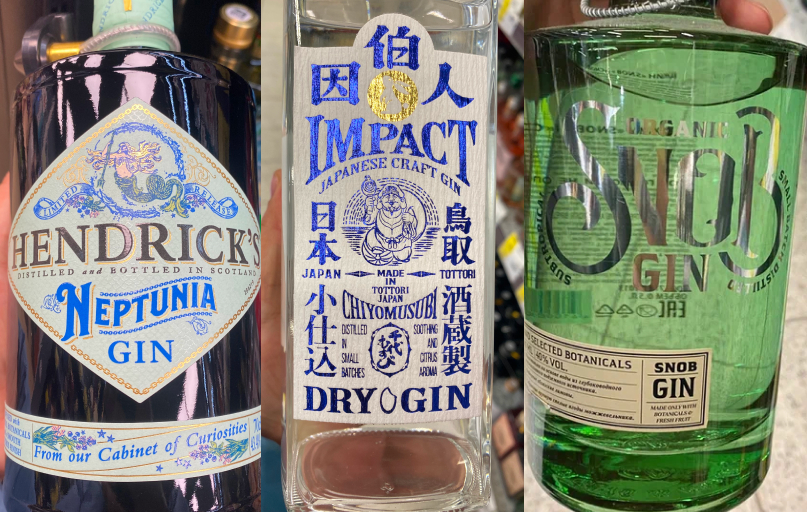 Джин — напиток с характером, и этикетка должна этот характер раскрывать хоть на лаконичном дизайне, хоть в буйстве цвета и блеска.
