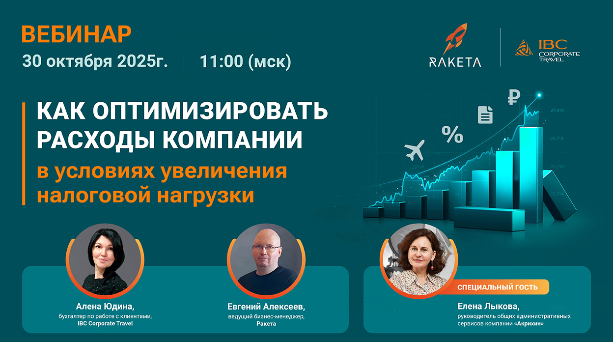 «Как оптимизировать расходы компании в условиях увеличения налоговой нагрузки» – именно так звучит тема вебинара агентства деловых путешествий IBC Corporate Travel и цифровой платформы Ракета.