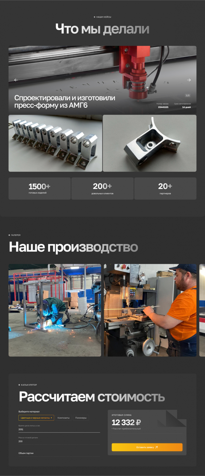 Разработали промо-сайт для компании занимающейся изготовлением деталей по чертежам