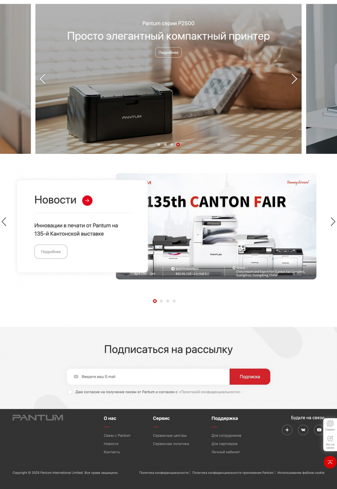 Разделы о компании Pantum предлагают подробную информацию о бренде, его миссии и ценностях.