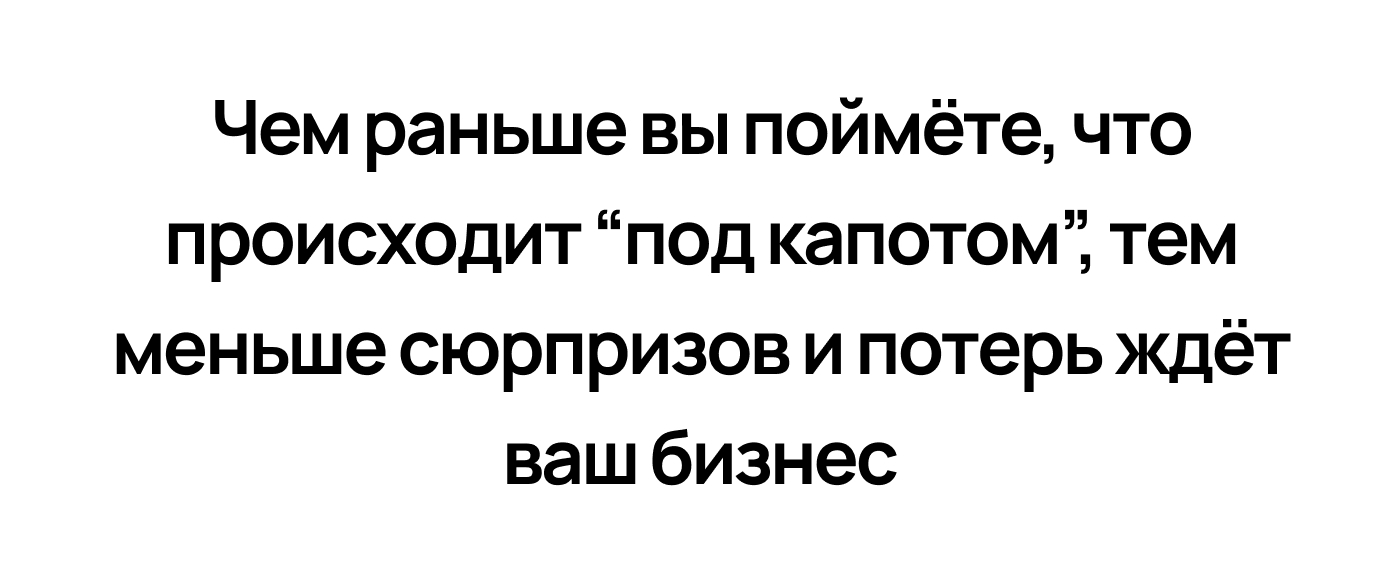 Чем раньше вы поймёте, что происходит «под капотом», тем меньше сюрпризов и потерь ждёт ваш бизнес.