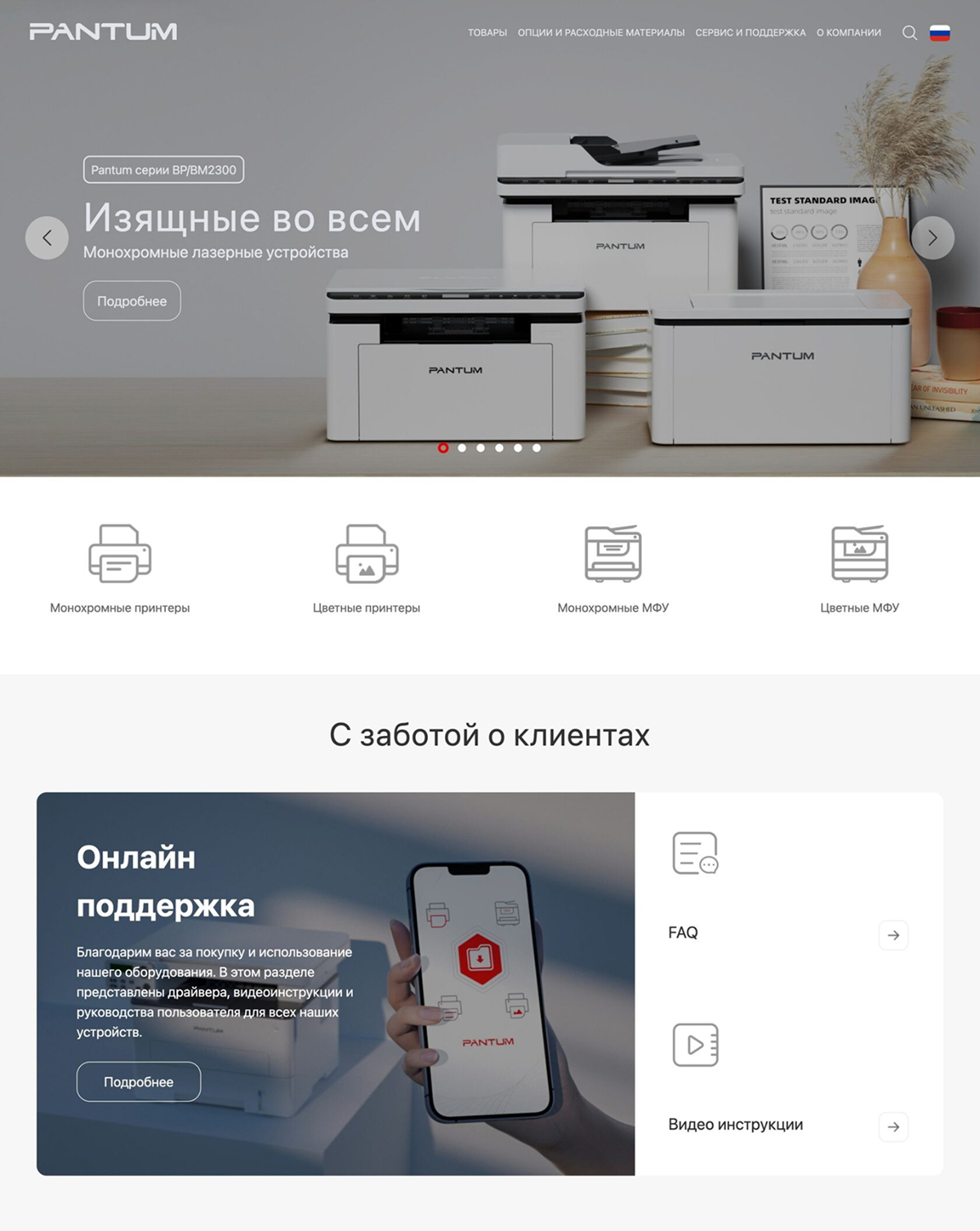 Такой же, как и техника Pantum — ничего лишнего, всё по делу, с акцентом на эффективность и доверие.