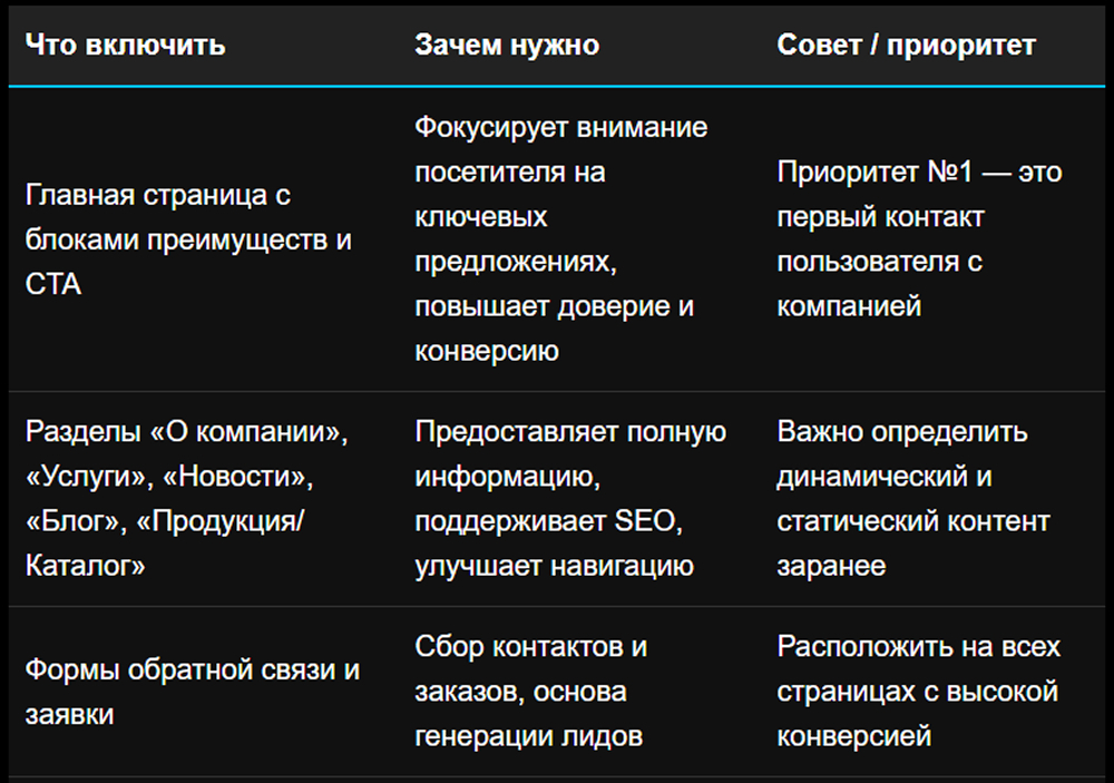 Добавьте сюда настройку SEO-тегов, карты сайта, аналитику и вы получите структуру, которая встречается в 9 из 10 корпоративных решений.
