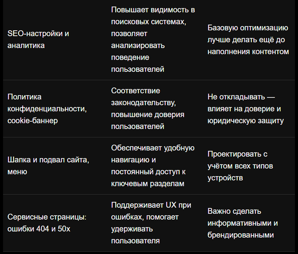 Такой фундамент обеспечивает стабильную работу, прозрачность для поисковых систем и комфорт пользователю.