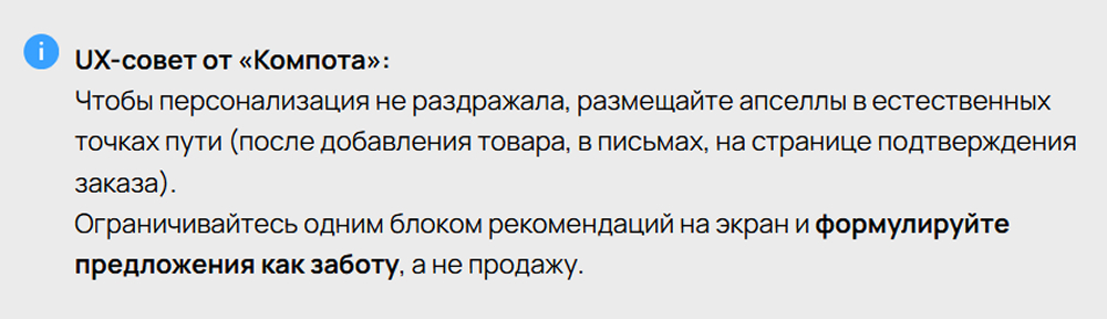 Такой UX-коммуникации человек доверяет. Это — диалог, а не давление. Именно здесь проходит грань между допродажей ради прибыли и допродажей как сервисом.