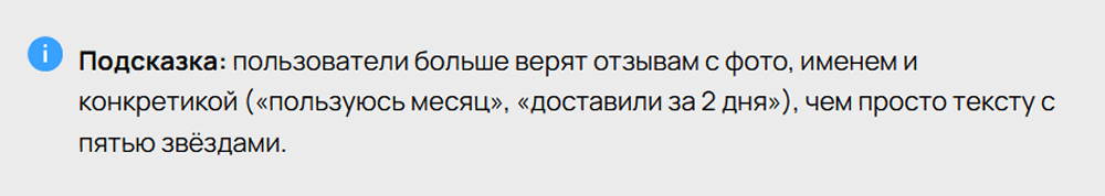Многие магазины добавляют блок отзывов «для галочки». Но их сила — в контексте и правдоподобии.