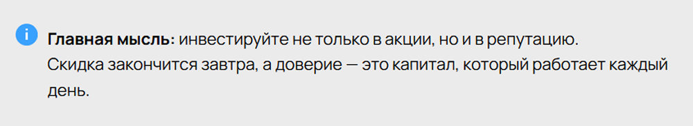 Но в долгосрочной перспективе именно доверие, а не выгода, удерживает клиента. И сегодня, когда рынок переполнен предложениями, именно доверие становится решающим фактором выбора.