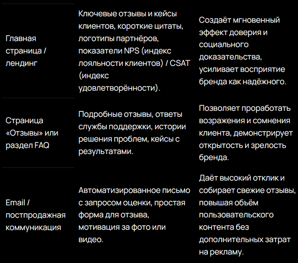 Дальше этот контент используется в карточках товаров, соцсетях и рекламе как независимое подтверждение качества.