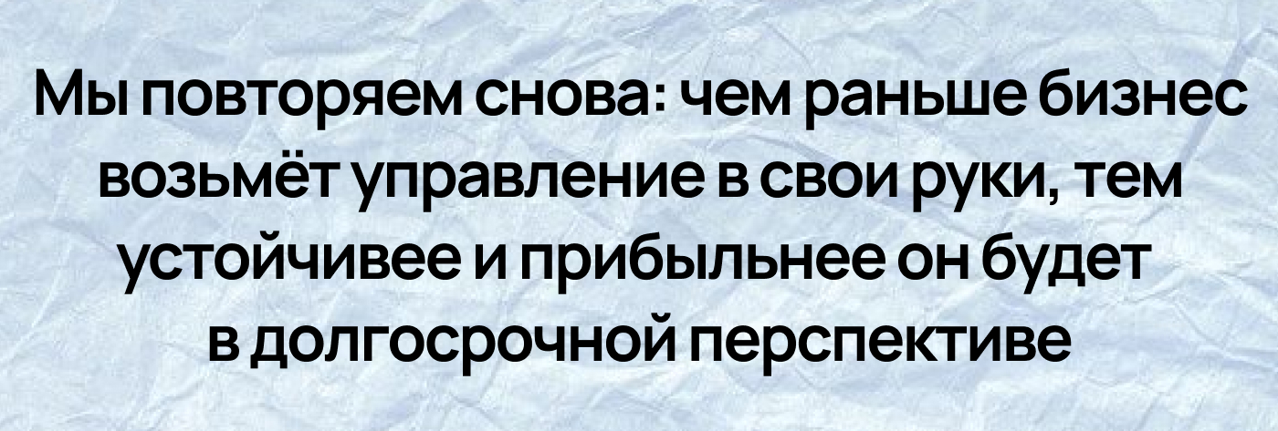 Только так бизнес становится устойчивым и независимым от внешних решений.