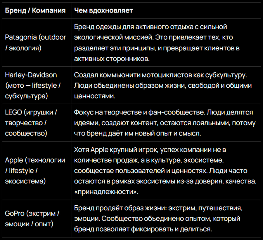 Исследования показывают, что единая система смыслов внутри сообщества создаёт эффект принадлежности: люди охотнее возвращаются к бренду, защищают его и рекомендуют тем, кому доверяют.