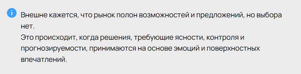 Дело в том, что само решение пока не структурировано, не имеет понятных критериев, и именно это делает выбор слепым.