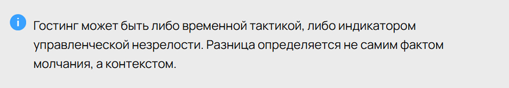 В корпоративной среде прямой отказ фиксирует позицию компании и завершает переговорный контур. Молчание, напротив, удерживает ситуацию в зоне неопределённости и сохраняет гибкость для изменения приоритетов.