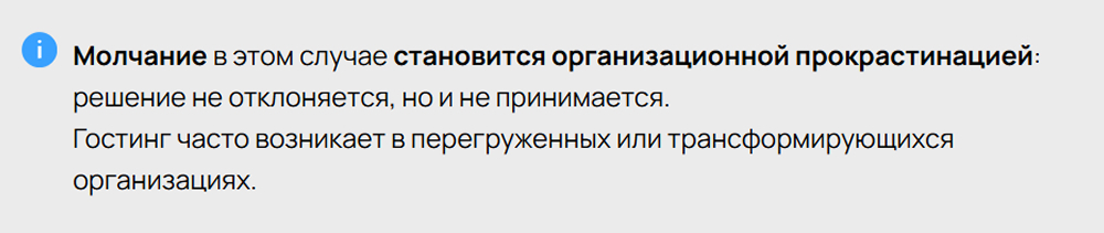В деловой практике это часто называют «гостинг» — термин пришёл из массовой культуры, но сегодня активно используется для описания внезапной паузы в переговорах. Это рабочая реальность: иногда так сохраняют гибкость, иногда это симптом системной слабости.