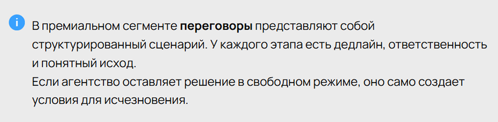 Однако зрелое агентство рассматривает это явление как индикатор качества собственной переговорной архитектуры.
