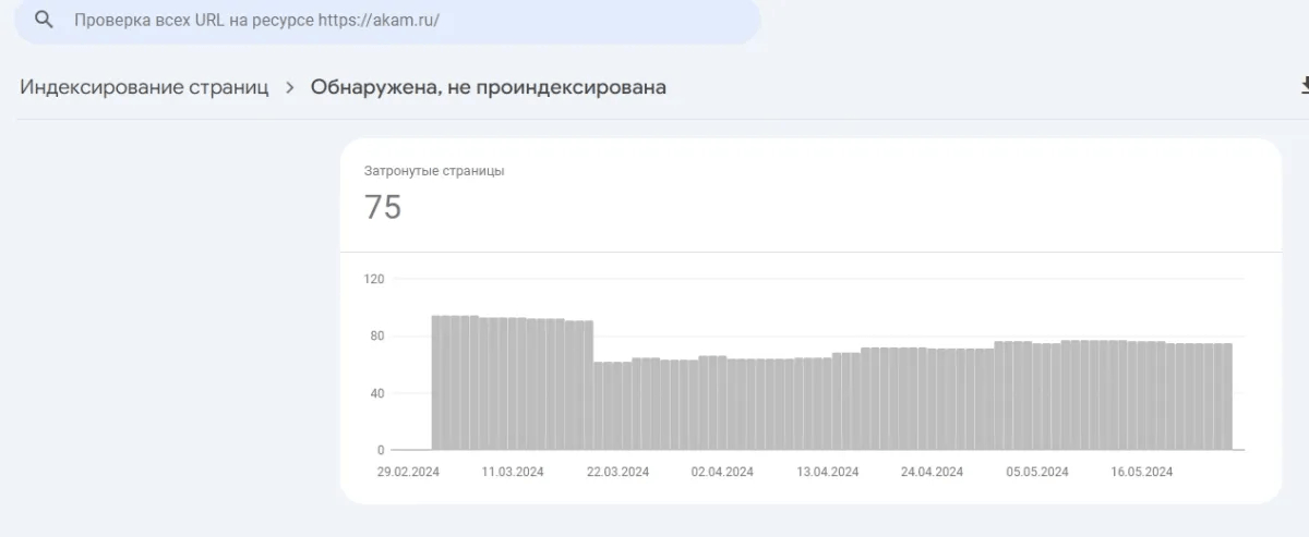 Проанализировали уведомления в Google Console, связанные с индексацией и обнаружили большое количество не проиндексированных страниц.