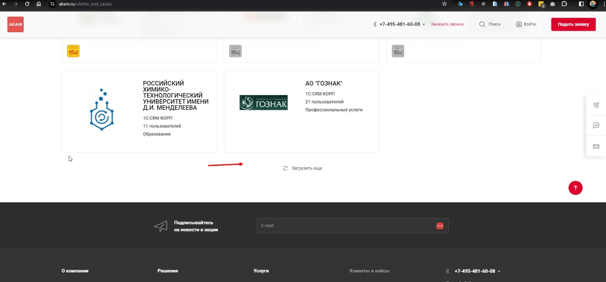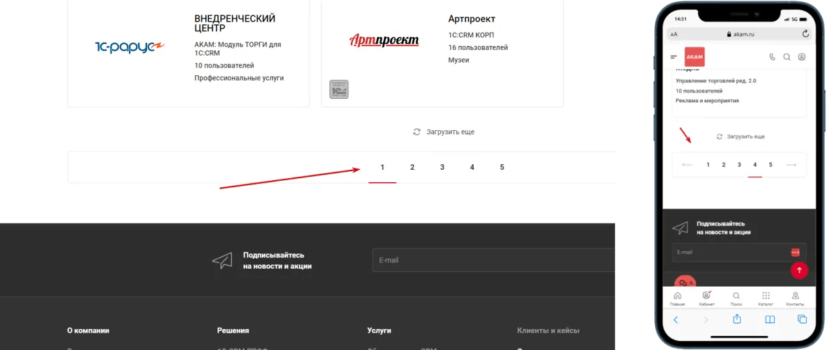 В разделе «Клиенты и кейсы» настроили удобную пагинацию, чтобы пользователям было проще переходить между страницами.