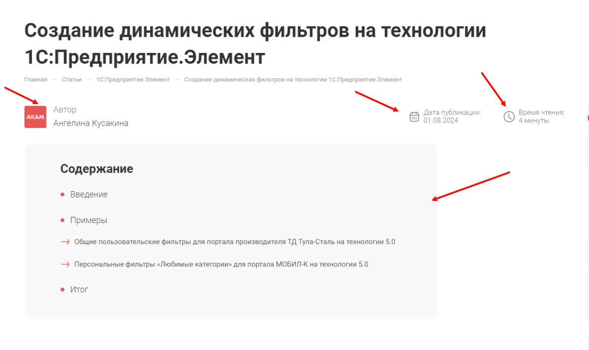 Также в разделе «Статьи» добавили новые блоки с информацией о времени чтения, авторе и содержании статей.