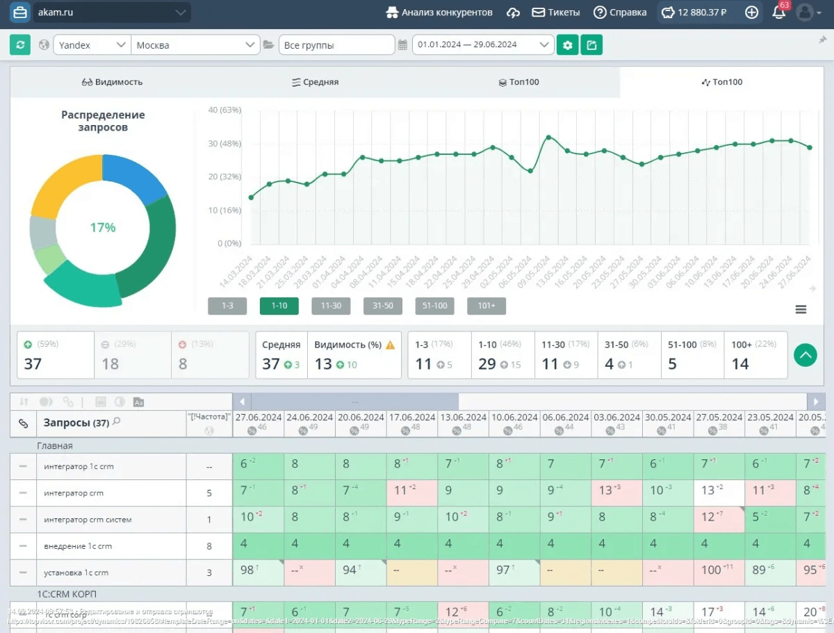 Работа над SEO-продвижением компании «Акам» показала, что комплексный подход и внимание к каждому аспекту сайта — от технической оптимизации до работы с внешними факторами — способны принести значимые результаты даже в условиях узкой ниши внедрения CRM. Мы не только увеличили трафик в 2 раза и вывели 46% ключевых запросов в ТОП-10, но и достигли главной ,бизнес-цели клиента — увеличение количества заявок в 10 раз.