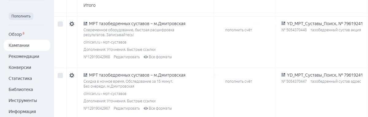 ‣ Отключили ретаргетинг по причине отсутствия с него заявок с РСЯ каналов и отсутствия записей с поиска на протяжении нескольких недель;
