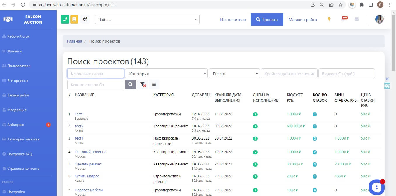 Важно, что готовое решение Falcon Auction, за которое клиент платит при покупке, не ограничено по количеству пользователей и личных кабинетов.