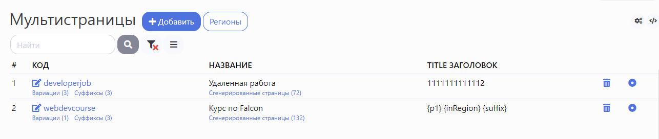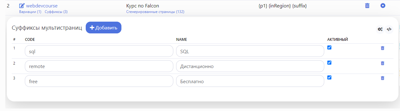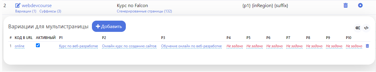 URL каждой сгенерированной страницы будет иметь следующий вид: /mp/code-variant-region-suffix