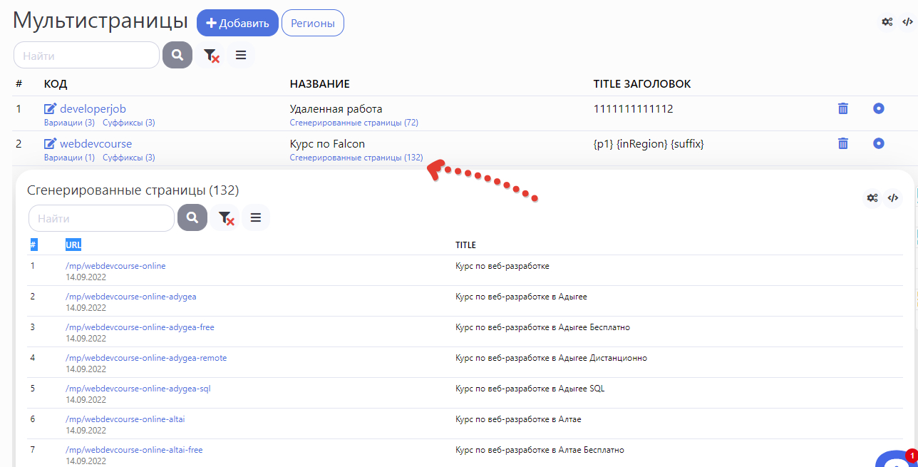 В итоге мы получили 132 страницы. Если будет вариаций 2-3, то и страниц будет в 2-3 раза больше.