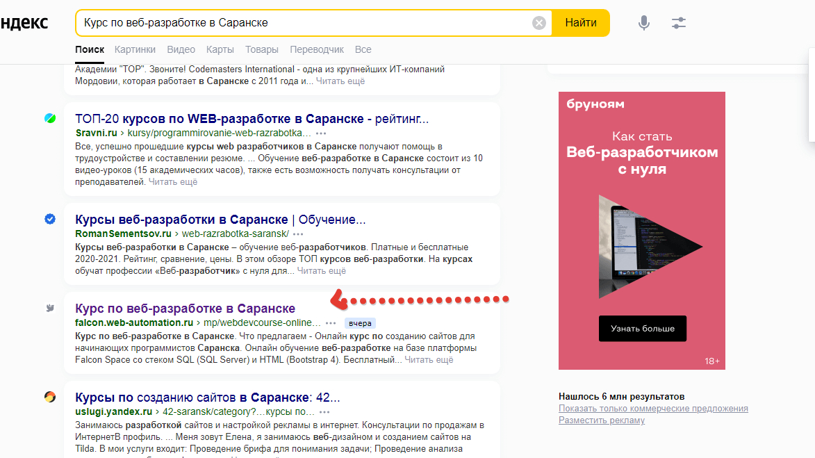 К примеру возьмем онлайн курсы. Мы запустили бесплатный курс по разработке Falcon Space и есть задача привлечь трафик на него. Если что, курс по веб-разработке здесь - https://lms.web-automation.ru/