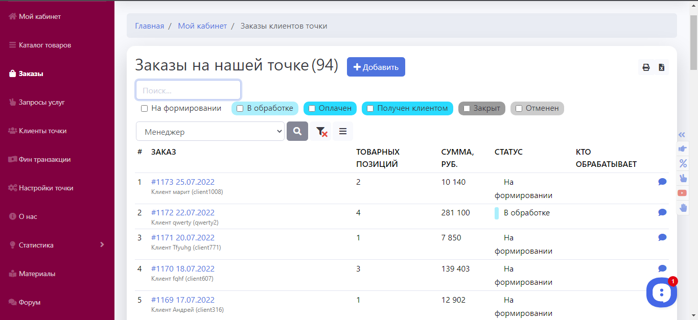 2. Личный кабинет для производителя должен быть удобным и функциональным.