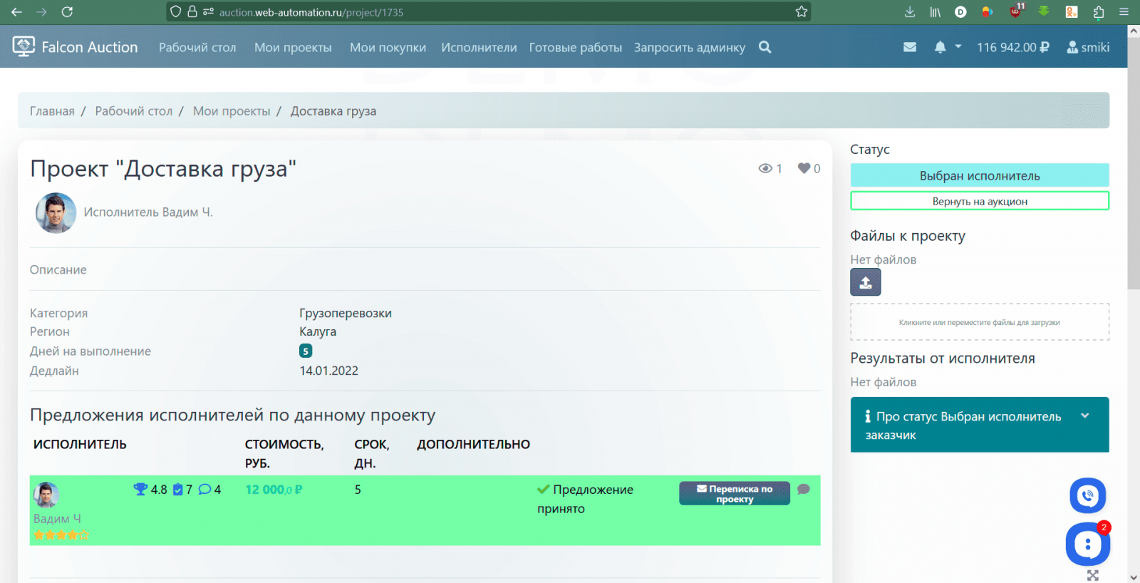 Подробнее о готовом решении сервиса исполнителей Falcon Auction.