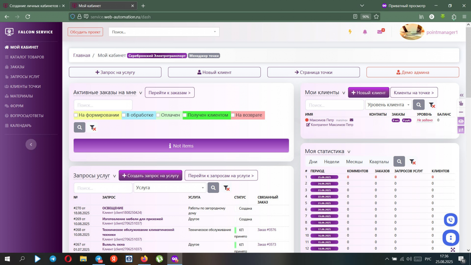 Например, так может выглядеть личный кабинет клиента в готовом решении Falcon Service: