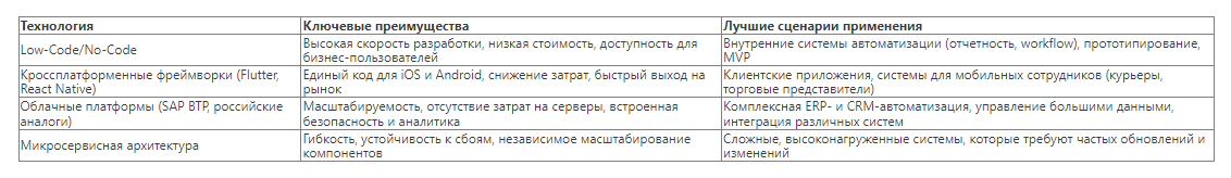 Будущее за технологиями, которые не просто решают задачи, а делают это гибко, быстро и с пониманием бизнес-целей. Современные low-code платформы, кроссплатформенные фреймворки и облачные сервисы позволяют создавать мощные информационные системы без гигантских затрат и долгого ожидания.