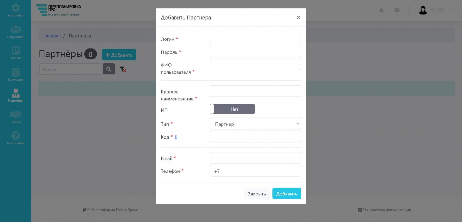 Создать программу, позволяющую осуществлять услуги перепланировки помещений, хранить документацию и предоставлять готовый пакет документов партнёру под его потребность.