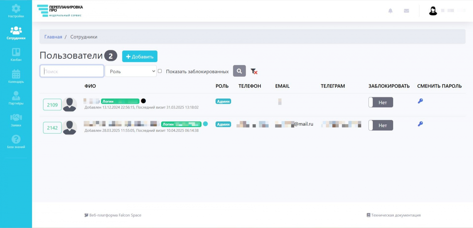 Факт оплаты отмечает администратор сайта, он же управляет всеми пользователями и настройками системы. У администратора есть помощник - руководитель. Он может просматривать данные всех пользователей, статистику по финансам, заявкам, партнерам, а также выгружать эту информацию в формате Excel.