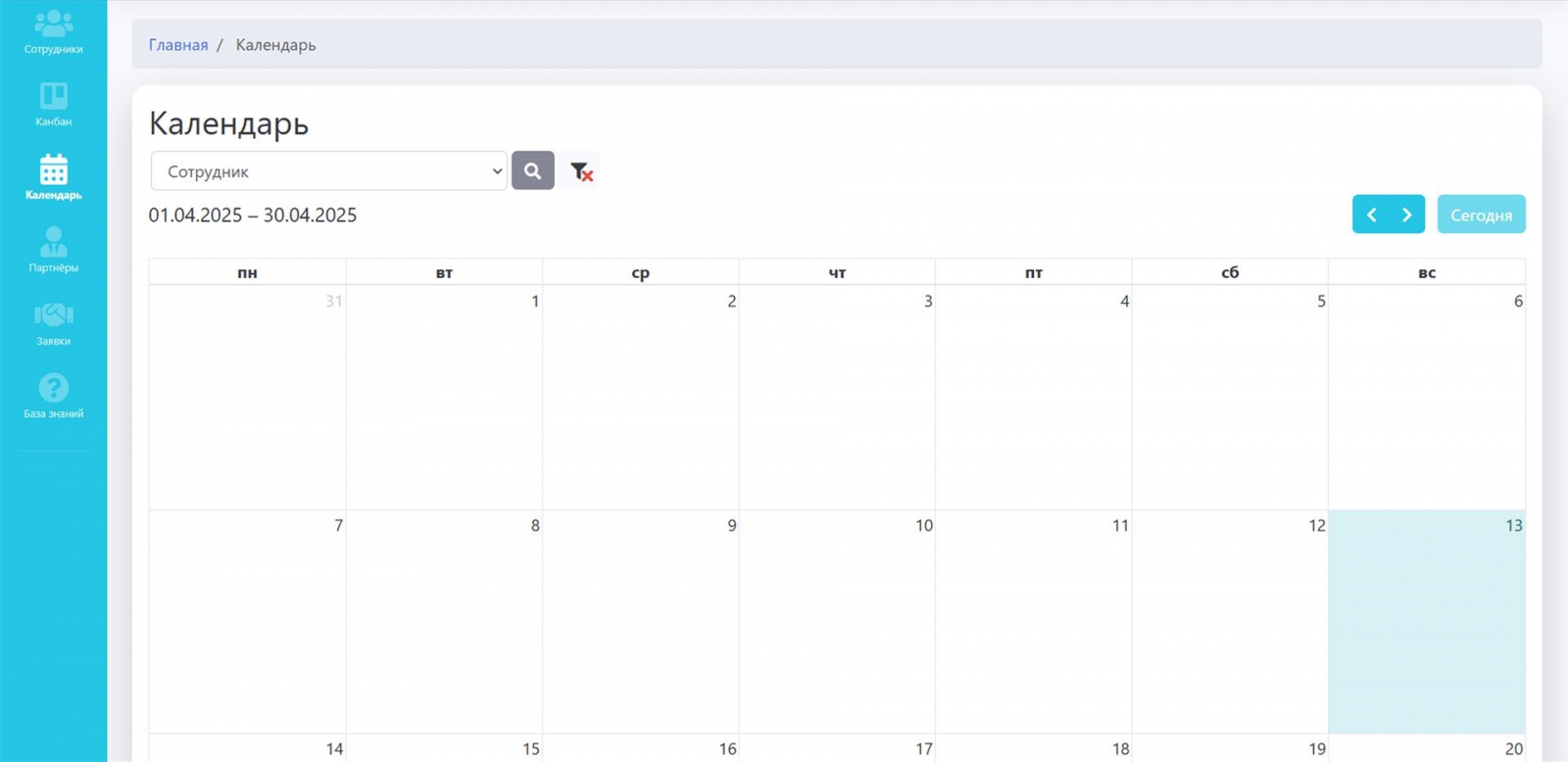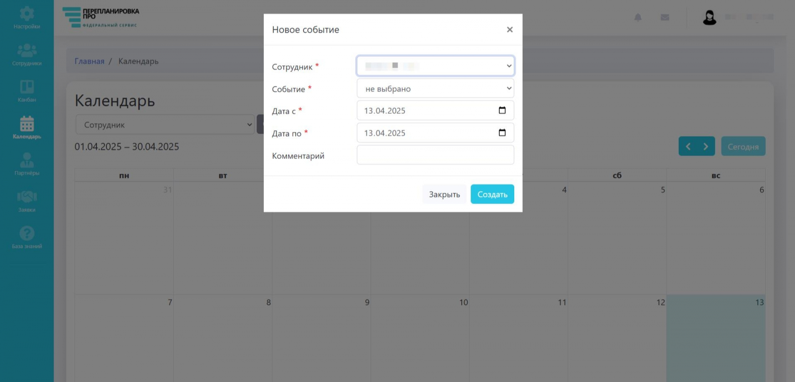 Инженеру доступен просмотр информации по заявке и редактирование своего графика. Вся коммуникация по заявке с партнером осуществляется через менеджера.