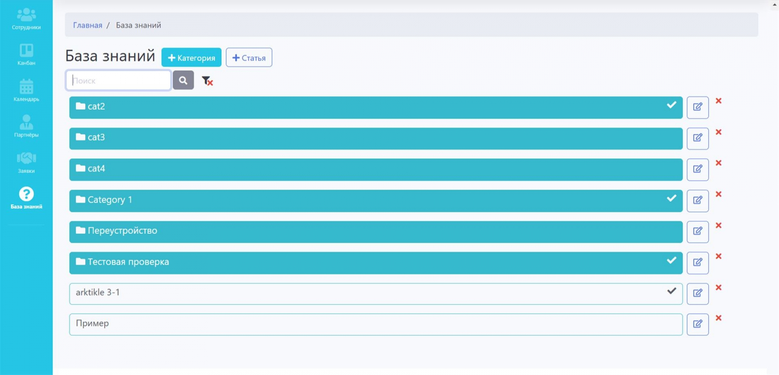 Помимо указанного функционала в системе присутствует калькулятор услуг и база знаний.