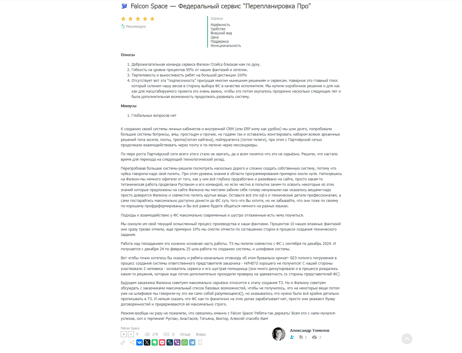 В проекте участвовал сильный бизнес-аналитик со стороны заказчика, а это 50% успеха проекта.Правильно поставленная задача, реализация действительно важных для программы требований, разумный компромисс между хотелками и надежностью реализации.