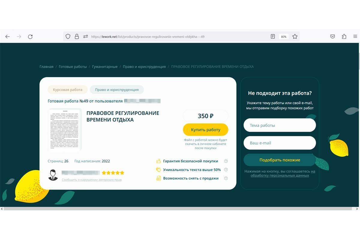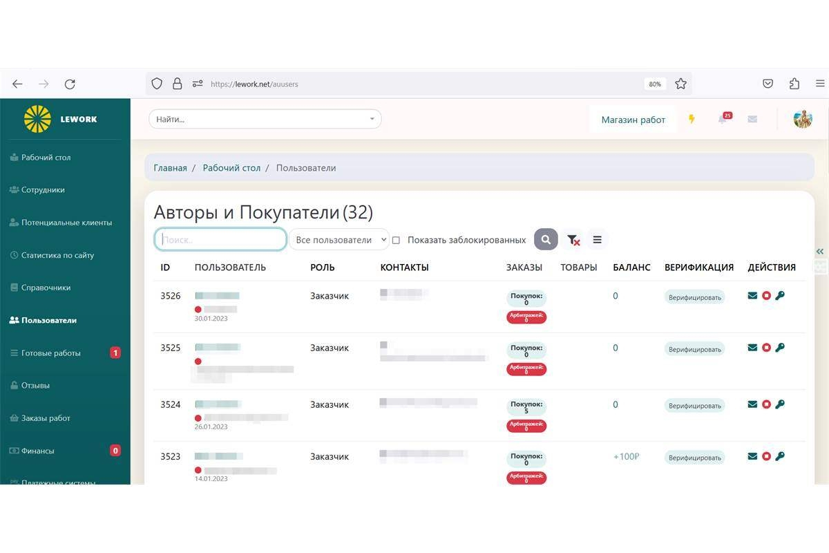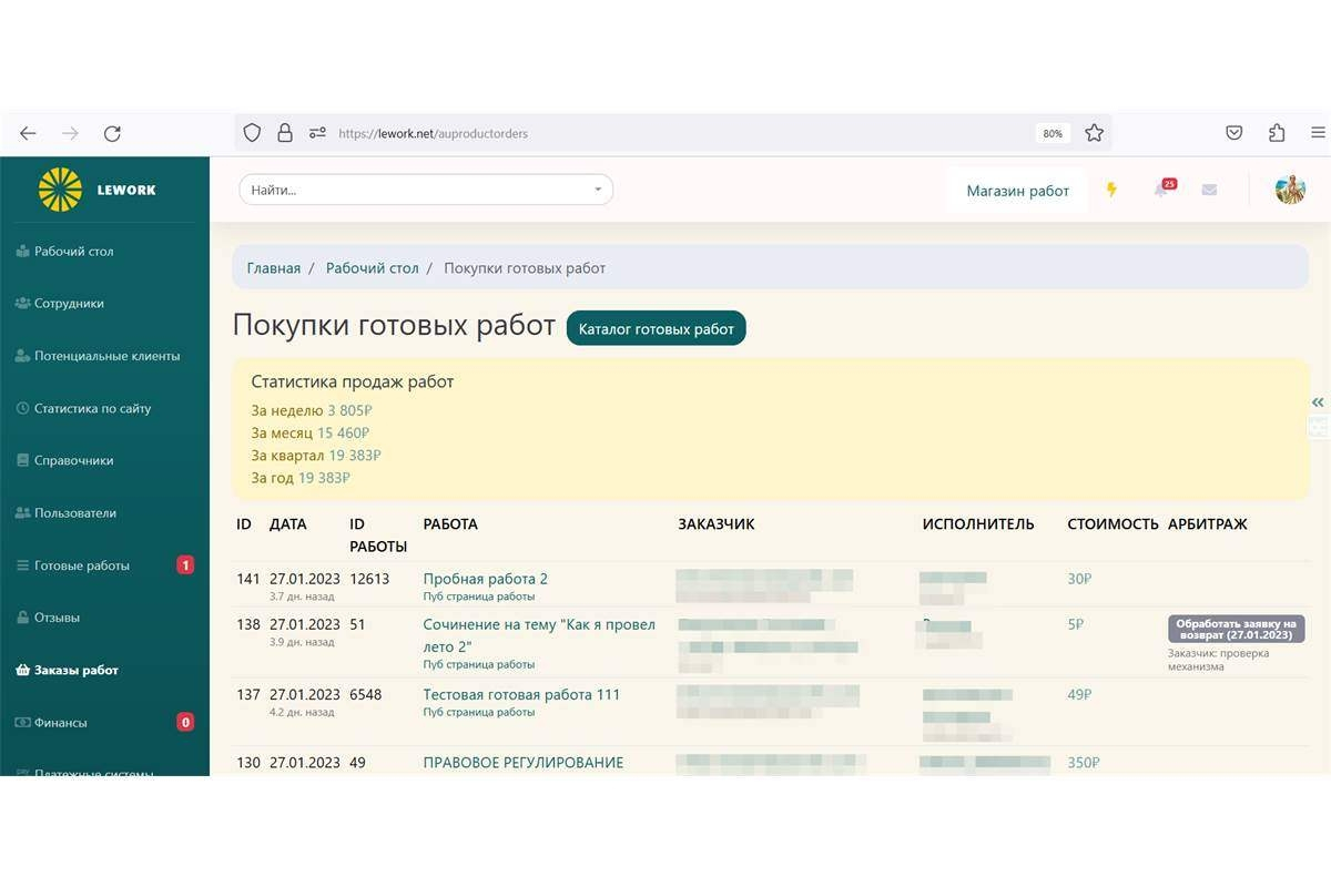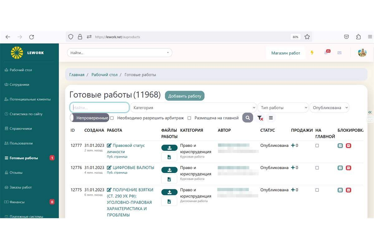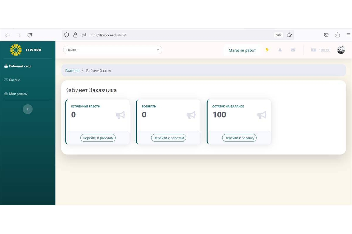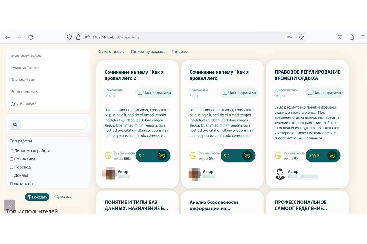 Для покупателей и исполнителей также были разработаны личные кабинеты. Покупатель может выбрать готовые работы в каталоге и купить их. Автор через личный кабинет может публиковать свои работы.