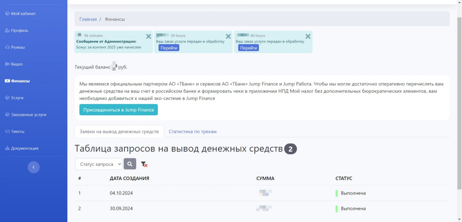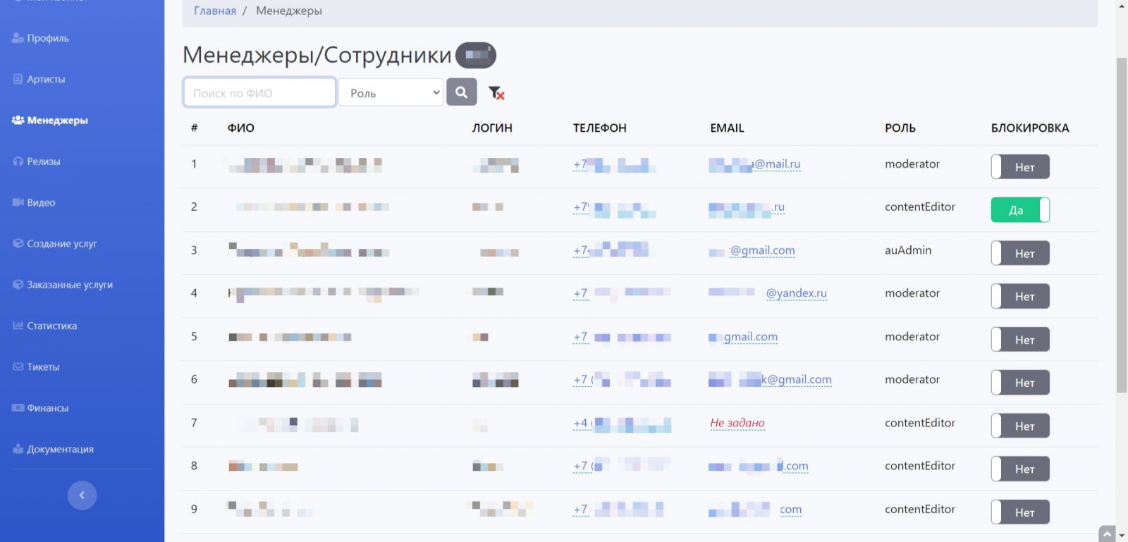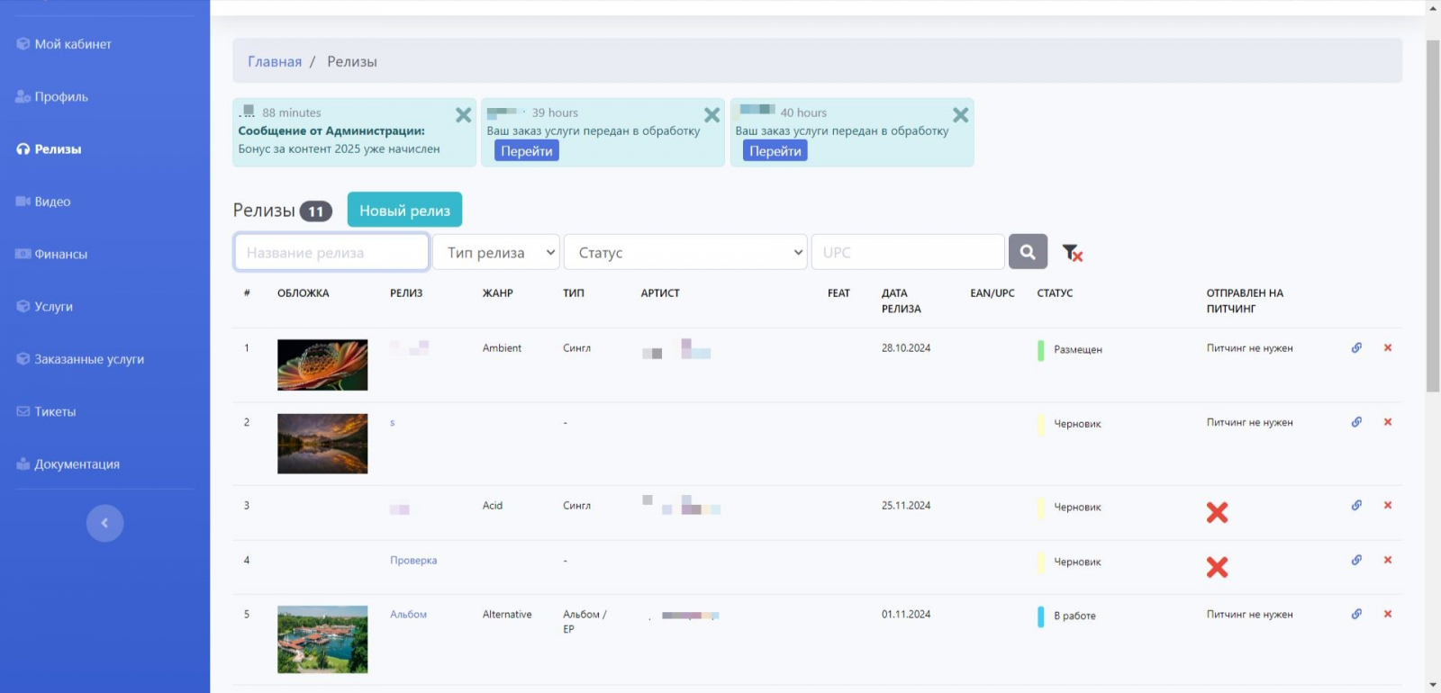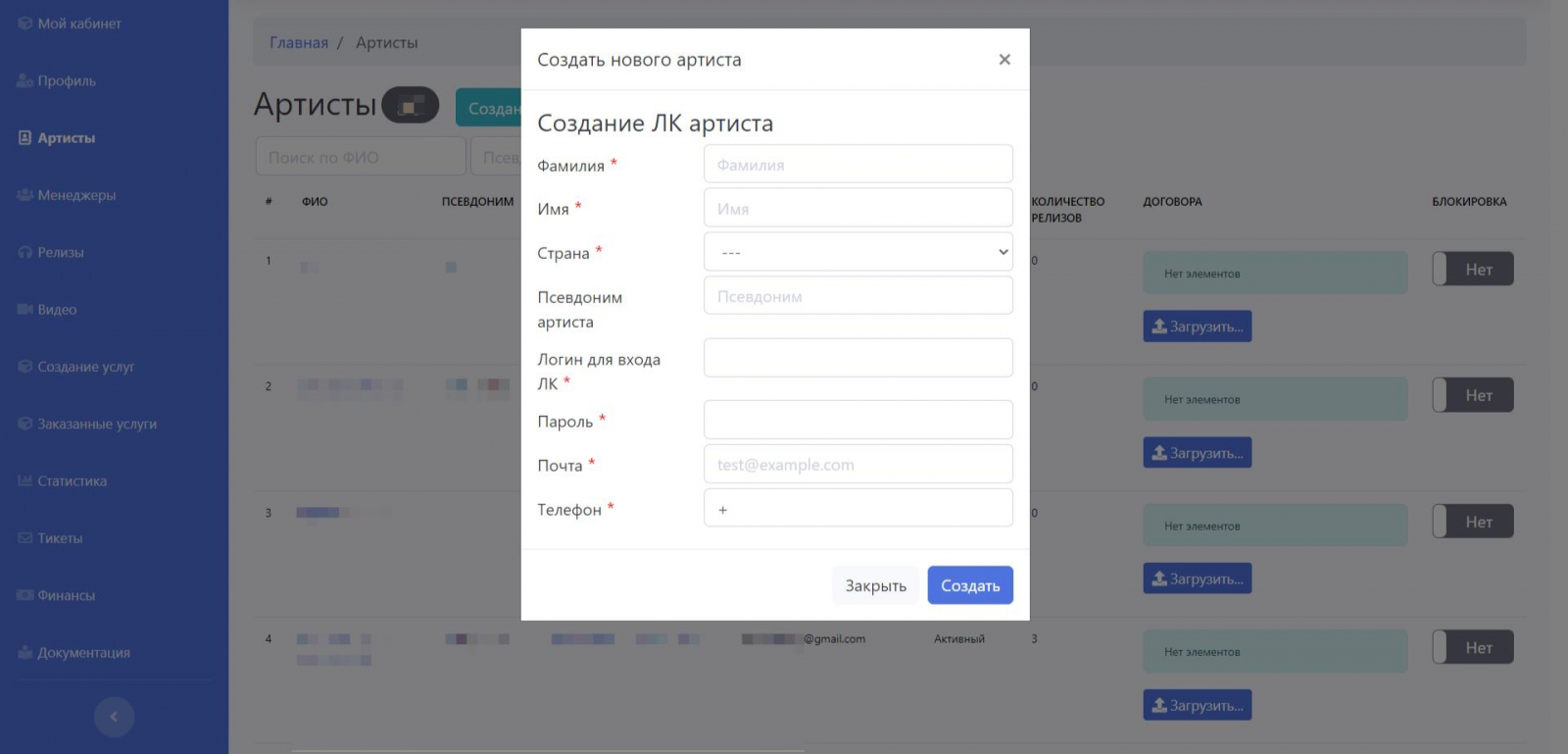 Разработать личные кабинеты для музыкантов и сотрудников лейбла, позволяющие вести совместную работу.