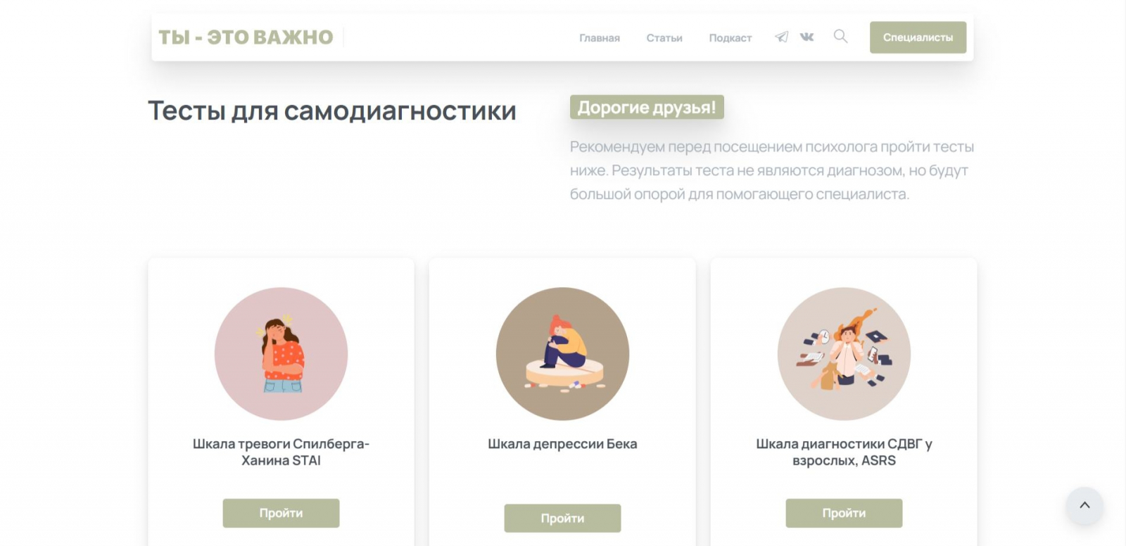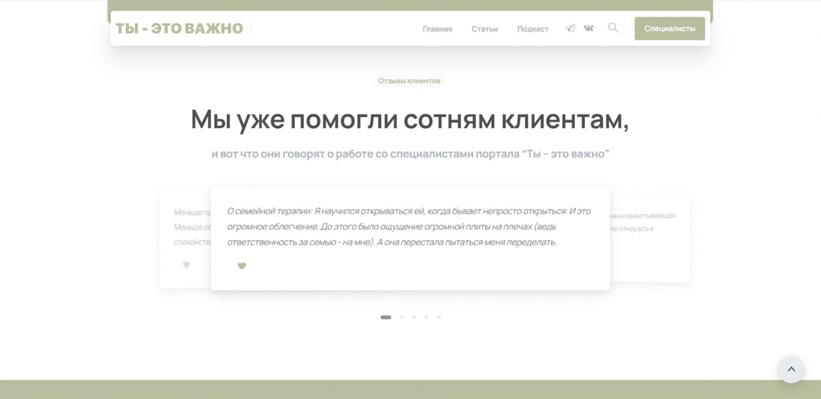 Для пользователей были разработаны лендинги с информацией о сервисе и списком специалистов, информационный блог.