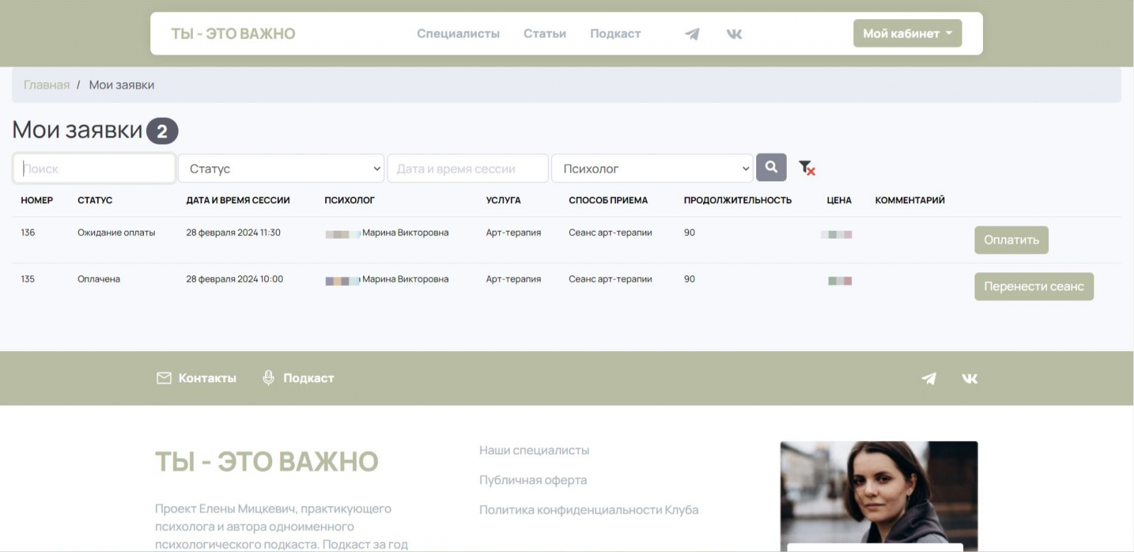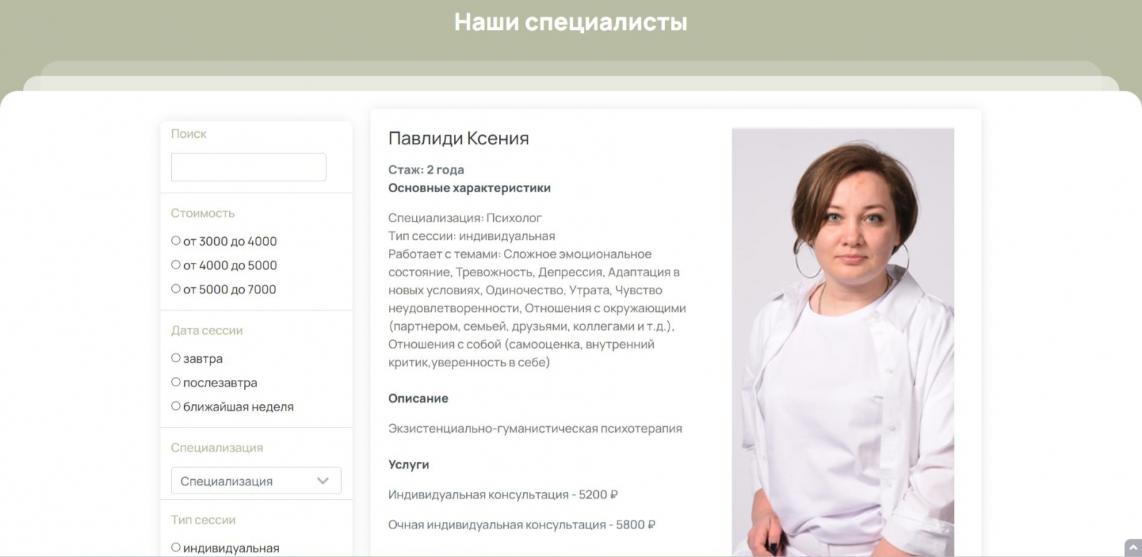 Разработать систему, в которой клиент сможет найти подходящего психолога, создать свой личный кабинет для записи на прием и его оплаты.