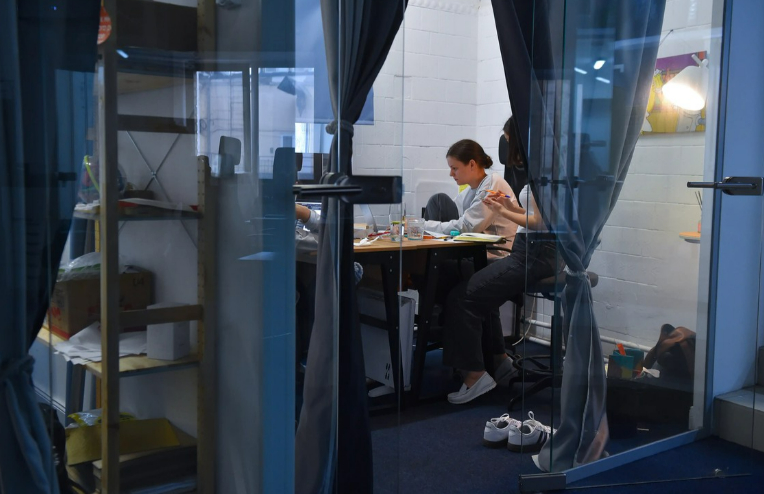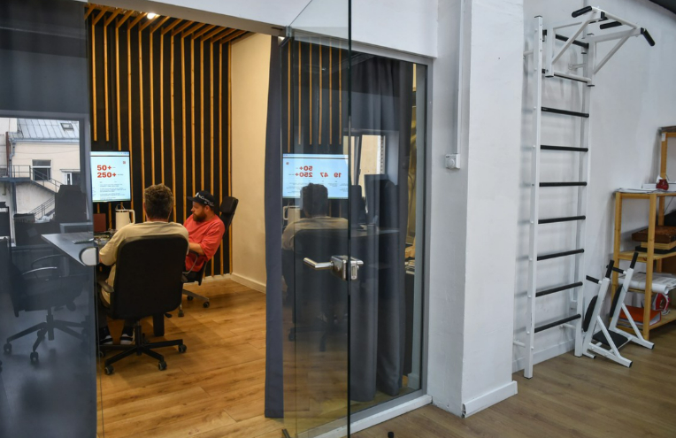 После кухни начинается опен-спейс, занимающий несколько залов. Яков рассказывает, что ему очень нравится, как устроен офис «Авито», и у себя в компании хотел бы сделать что-то подобное.