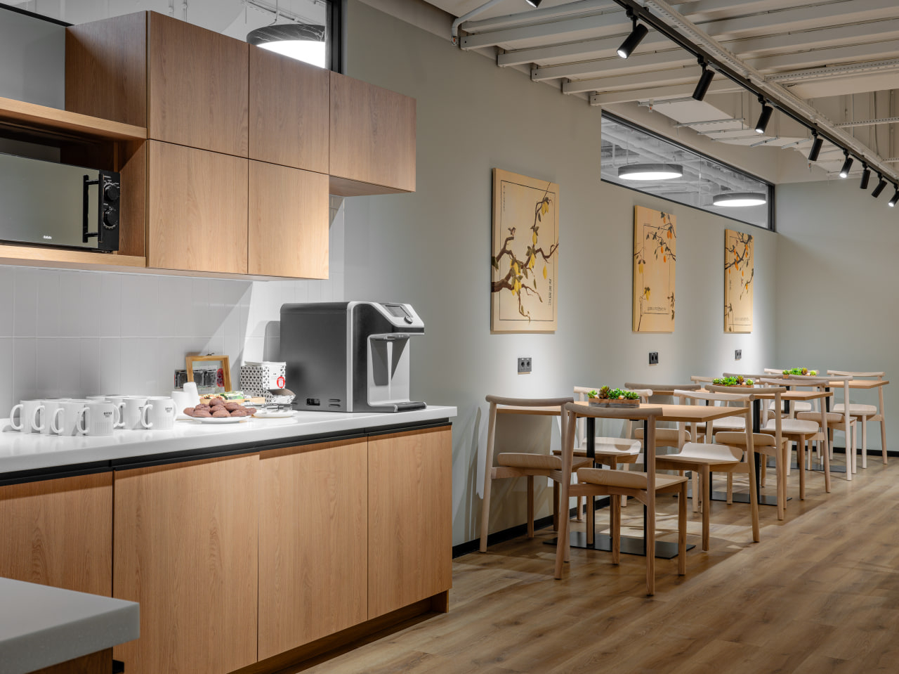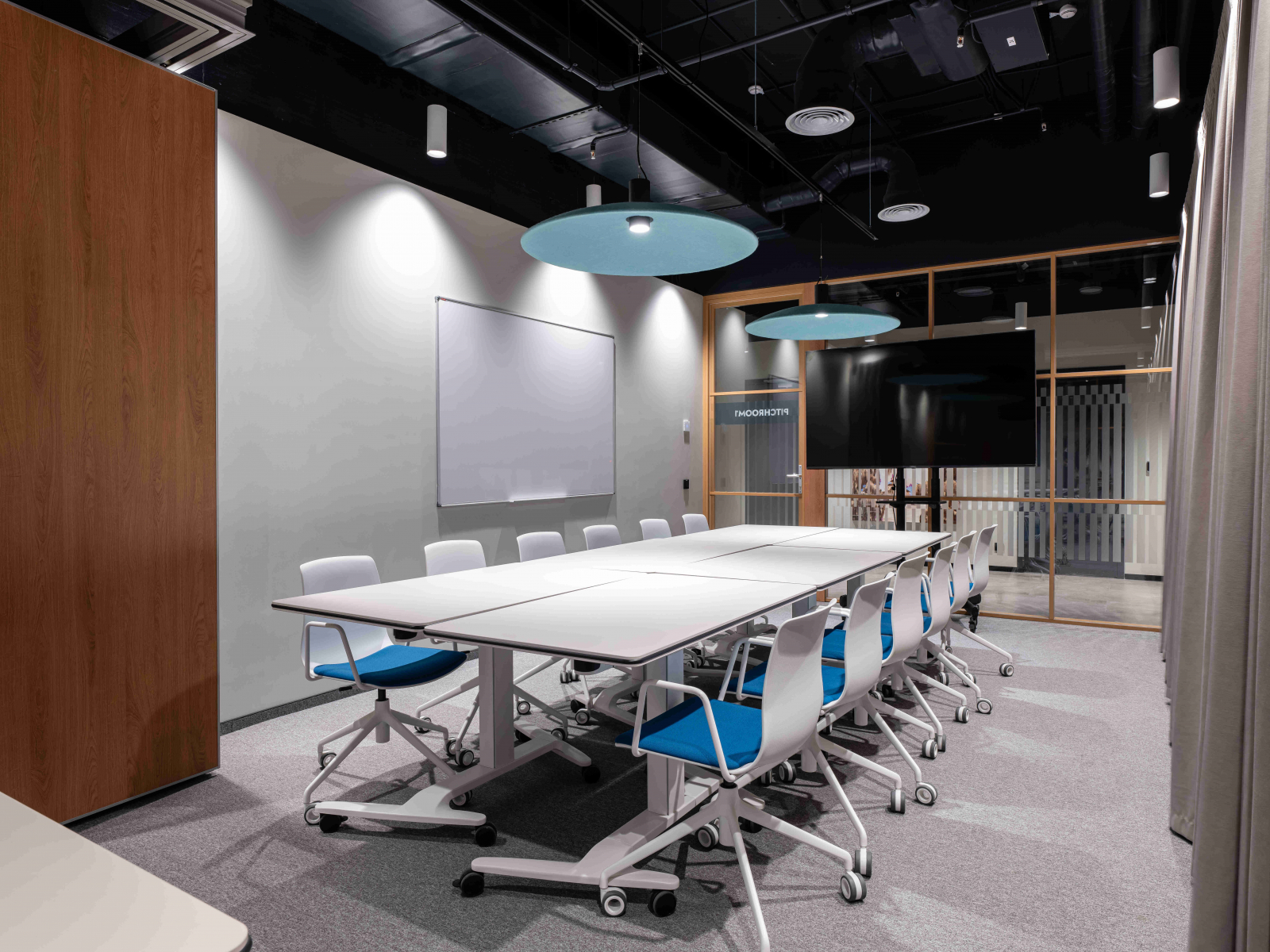 Возможность арендовать пространство для съемок на короткий срок не единственное преимущество. В отличие от условной студии или декораций в павильоне, здесь все по-настоящему. Помимо офисных блоков с индивидуальными рабочими местами, здесь много интересных локаций: лаундж, переговорные разных форматов, акустические кабины, столовая зона.