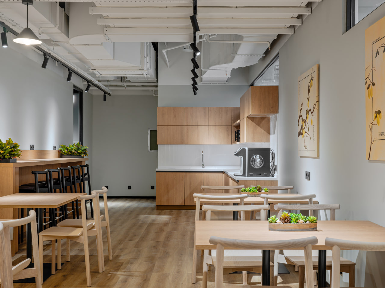 При проектировании сервисного офиса TheOffice мы исходили из того, что нашим резидентам важно не просто поесть, но и пообщаться, отвлечься от рабочей рутины. Поэтому в нашей кухне-столовой светло и просторно. Здесь есть все необходимое для быстрого разогрева или приготовления еды и напитков. А уборкой занимаются сотрудники управляющей компании.