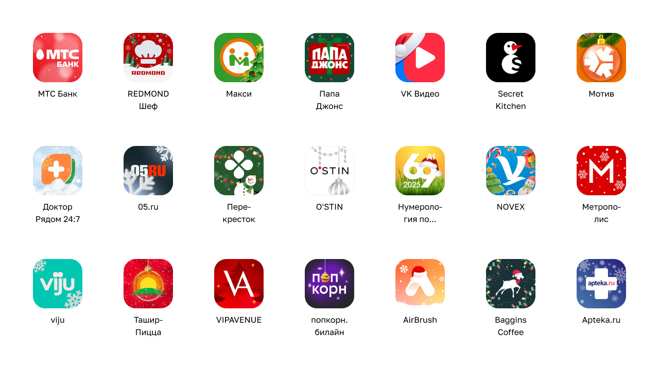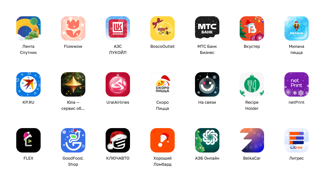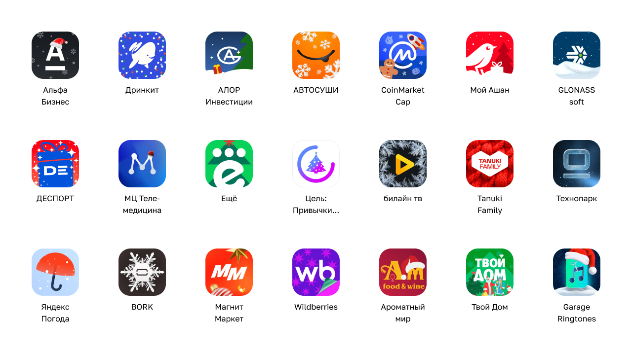Уже третий год подряд дизайн-команда айти-агентства Фьюче собирает новогодние иконки приложений. Если вы ещё не видели, советуем заглянуть в подборку за 2023 и 2022 год. Возможно, так будет понятнее, почему бренды выбрали именно такие образы в этот раз.