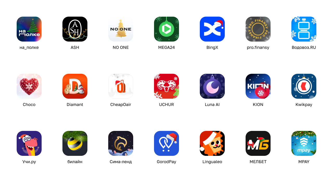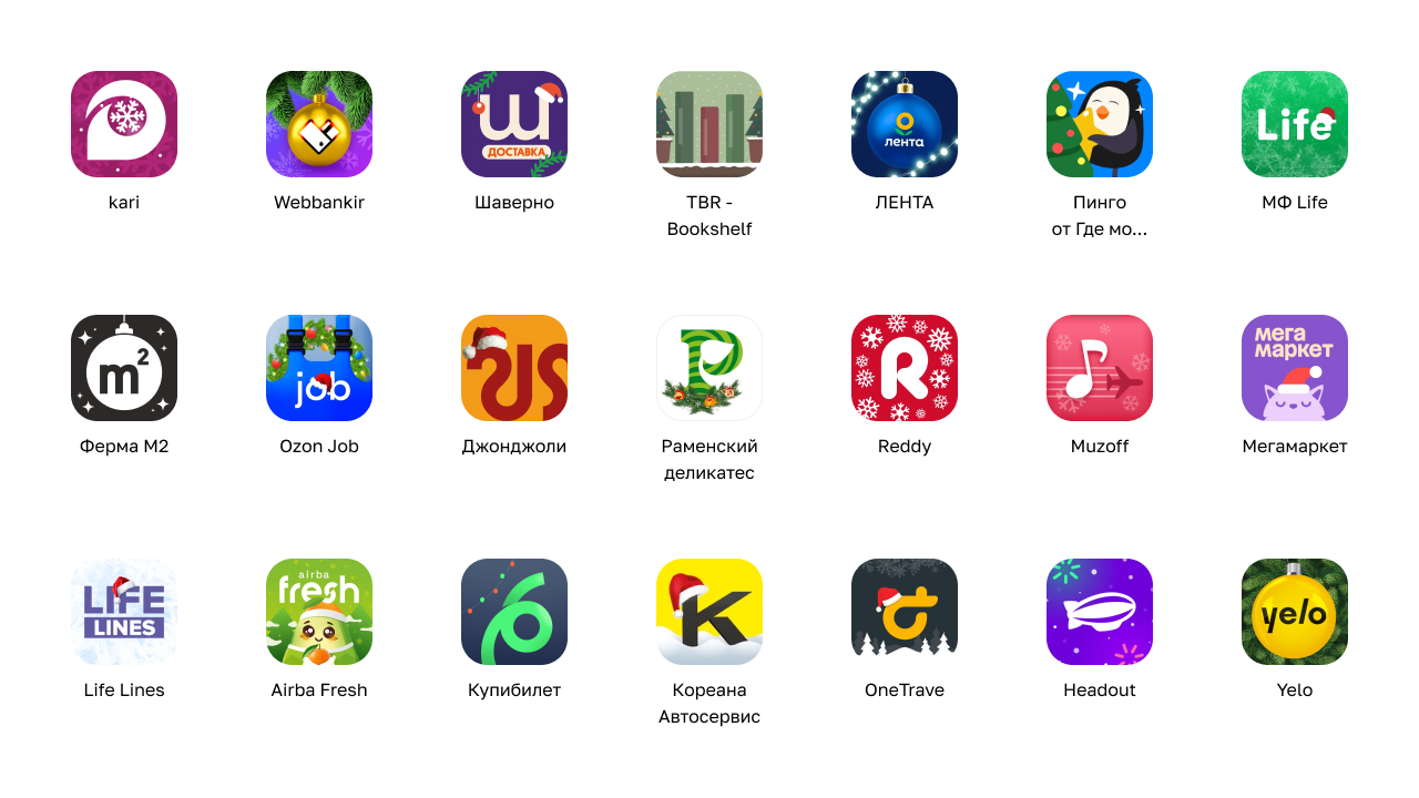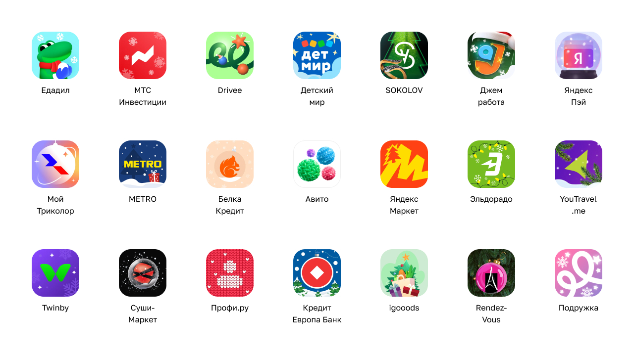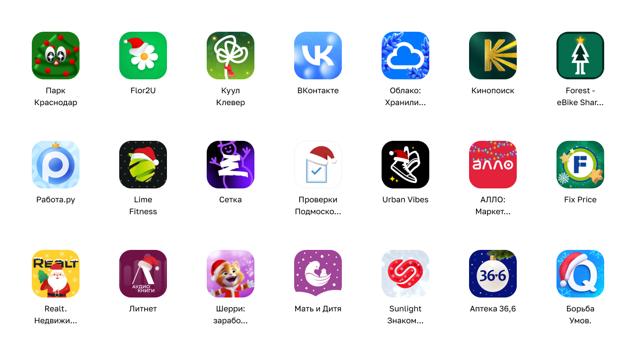 Уже третий год подряд дизайн-команда айти-агентства Фьюче собирает новогодние иконки приложений. Если вы ещё не видели, советуем заглянуть в подборку за 2023 и 2022 год. Возможно, так будет понятнее, почему бренды выбрали именно такие образы в этот раз.